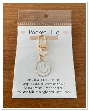 Smiley sleutelhanger met tekstkaart, leuk om te geven en te krijgen